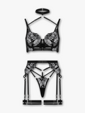 It's time to bring the heat and get provocative with our Georgina lingerie set. This set enchants with its bold cut-out details, floral embroidery, and decorative straps. Wear Georgina and they'll be lost for words.
