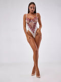 Priya combines passion and sophistication in one beautiful piece. It is delicately constructed with boning at the base of the cups to give a rounded shape and provide support. This transparent lace bodysuit with floral embroidery will make you look confident and sexy in an instant.
