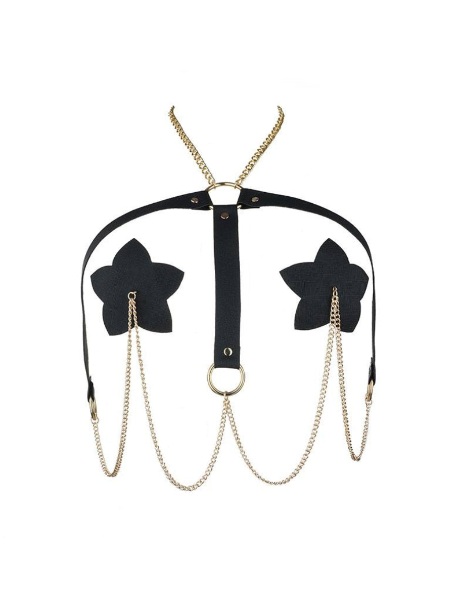 Our Star nipple pasties are a playful addition to your lingerie collection. Allowing you to bring a touch of seductive coverage to your favourite open-cup styles, this pair features star shape pasties connected by a sparkling chain and a provocative choker.